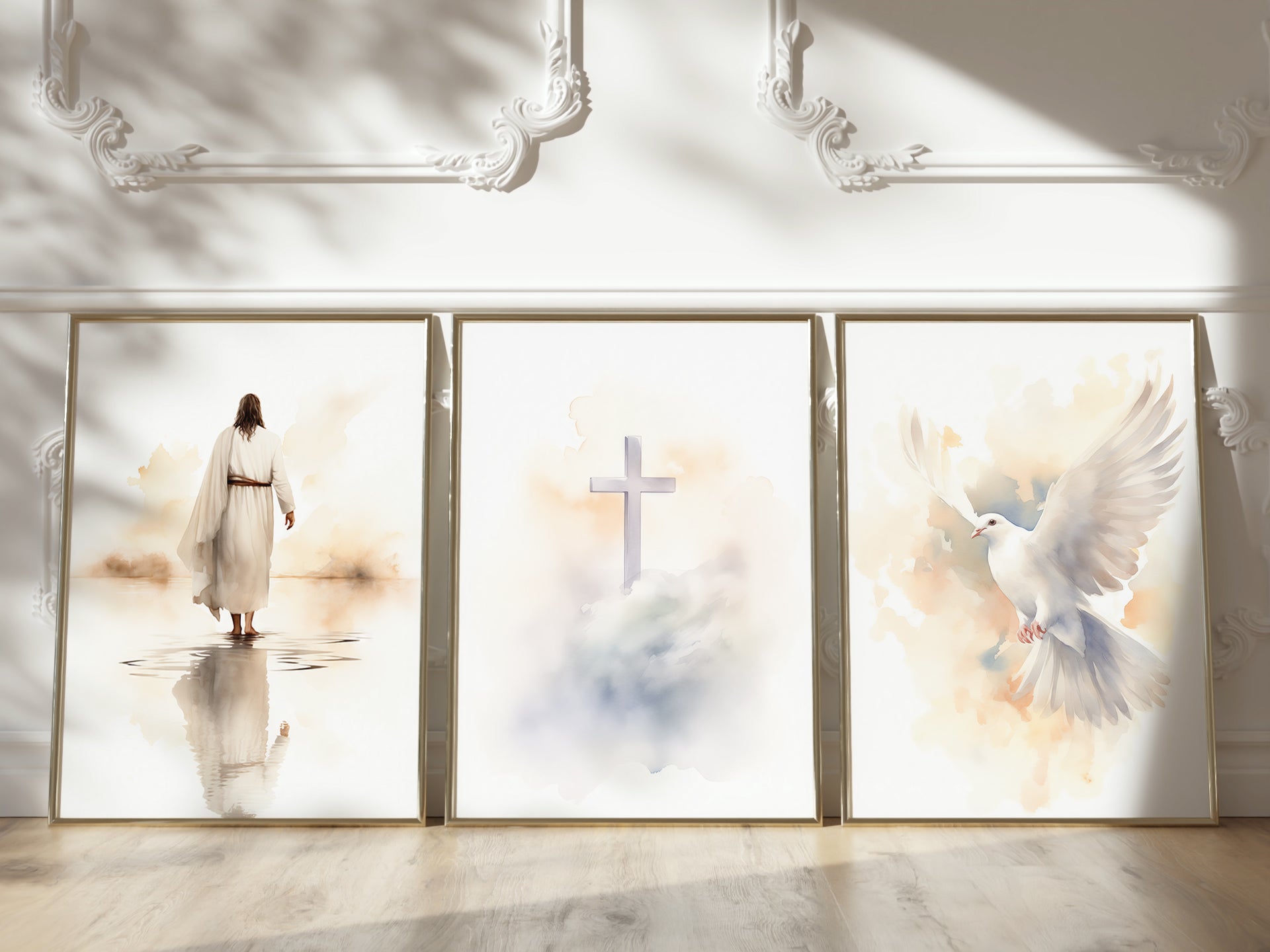 This artwork is one of a 3-piece minimalist Christian art set, including Heaven's Embrace and The Holy Spirit.